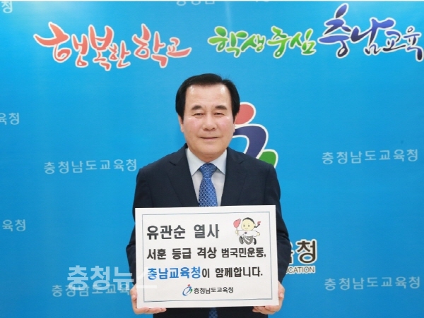 충남도교육청(교육감 김지철)이 ‘유관순열사 서훈 등급 격상 범국민운동(이하 유관순 열사 서훈 격상 운동)’에 적극 나서기로 했다.