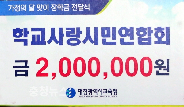 대전시교육청은 지난 15일 시교육청 접견실에서 학교사랑시민연합회(상임대표 채재학)로부터 교복구입 장학금 200만 원을 전달받았다고 밝혔다. 교육청은 관내 중·고등학교 학생 중 어려운 환경에 있는 학생 20명에게 1인당 10만원씩 지원할 계획이다. 저작권자 © 충청뉴스 무단전재 및 재배포 금지 김윤아 기자 다른기사 보기 기사가 마음에 드셨나요? 충청뉴스 좋은 기사 후원하기 1,000원 3,000원 5,000원 10,000원 30,000원 50,000원 직접입력 비회원 약관동의하기 ※ 소중한 후원금은 더 좋은 기사를 만드는데 쓰겠습니다.