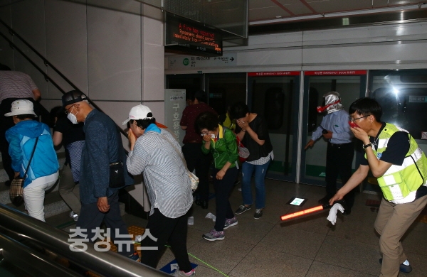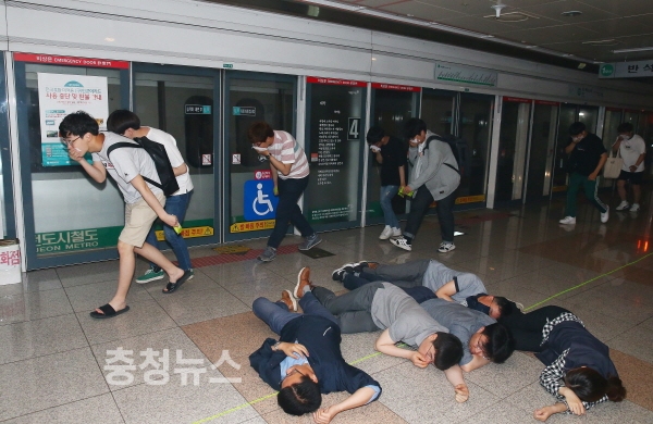 대전 유성구는 17일 노은로 273에 위치한 지족역에서 2018년 재난대응 안전한국훈련 현장대응훈련을 실시했다.