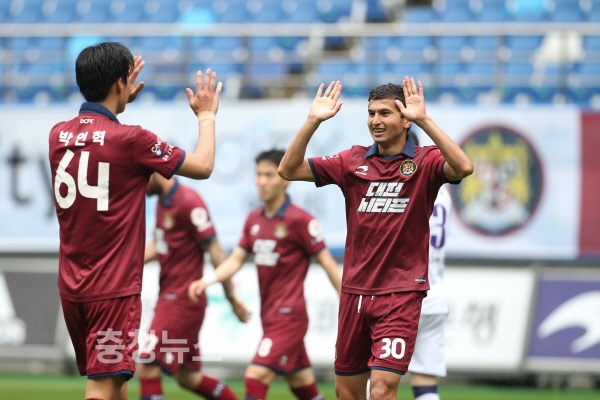 아산을 격파할 대전의 무기는 공격의 삼각편대다. 박인혁, 키쭈, 가도에프로 이어지는 삼각편대의 호흡이 날이 갈수록 빛나고 있다. 지난 안양전에서도 가도에프가 2골, 키쭈가 1골, 박인혁이 2도움을 기록하는 등 고른 활약을 펼쳤다.