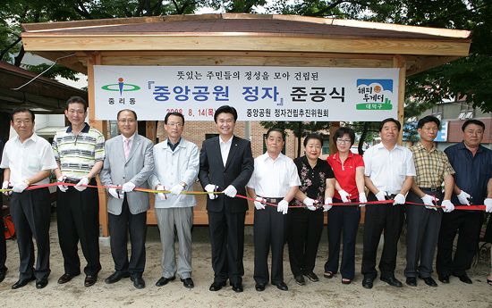 대전시 대덕구가 14일 정용기 대덕구청장과 박수범 대전시의원, 주민대표 등 100여명이 참석한 가운데 중리동 201-6번지 중앙공원 내 정자 준공식을 가졌다.