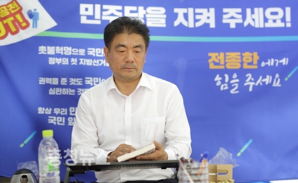 전종한 천안시장 예비후보가 18일 보도자료를 통해 "시장 후보 전략 공천에 승복할 기회, 우리당 후보를 위해 백의종군할 기회를 달라"고 호소했다.