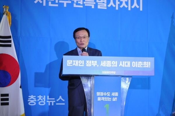 박병석(대전 서구갑) 국회의원은 “이춘희 후보야말로 세종시를 가장 잘 알고 사랑하는 사람이고, 앞으로 세종시를 가장 잘 이끌어갈 사람”이라며 이 후보를 추켜세웠다.