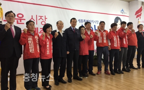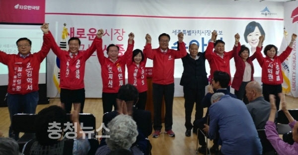 이명수 국회의원, 홍문표 의원, 유용철 세종시당위원장과 세종시의원 후보 들과 함께