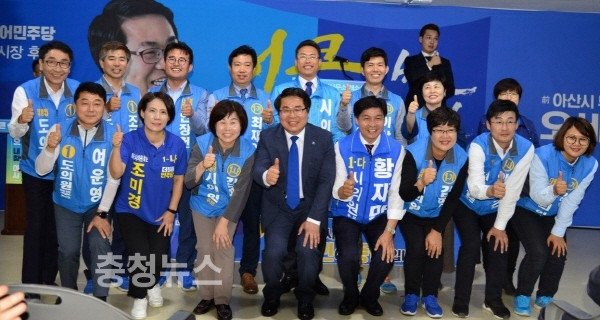 인사말에 앞서 오세현 후보는 6.13지방선거 아산시 시도의원 출마자 전원을 소개하는 자리를 마련하고 “선거운동 기간 더불어민주당 모든 출마자들과 함께 ‘원팀’으로 힘을 모아 반드시 승리하자”고 다짐했다.