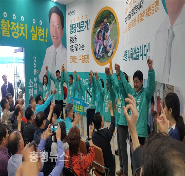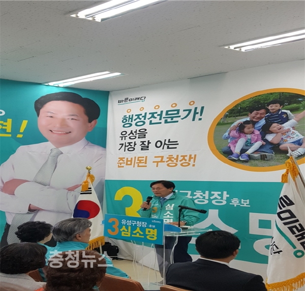 바른미래당 심소명 유성구청장 후보가 지난 19일 선거사무소 개소식을 열고 지지세 확산과 본격적인 선거운동에 돌입했다.