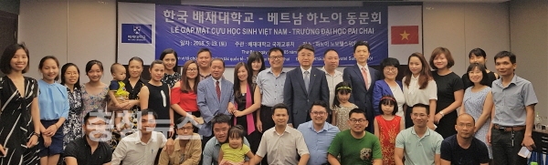김영호 총장은 지난 19일 베트남 하노에서 ‘배재대-베트남 동문회’를 개최했다. 이 자리엔 배재대 출신인 대학 교수, 과학기술부 공무원, 연구원, 은행원 등 다양한 직업분야 동문 35명이 참석했다. 배재대는 베트남 발전 가능성을 염두에 두고 2000년 초반부터 석‧박사 등 고급 두뇌를 유치해 현재에 이르고 있다. 회원 53명으로 구성된 동문회는 매년 베트남 설날 전후 교류하며 끈끈한 동문애를 자랑한다.