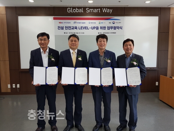 한국철도시설공단(이사장 김상균)은 한국도로공사 등 3사와 ‘가상현실(VR) 건설 안전교육 콘텐츠 공유협약’을 한국도로공사 인재개발원(경기도 화성시 소재)에서 23일 체결하고, 중복개발 방지로 예산 절감을 위해 콘텐츠를 공유한다고 밝혔다.