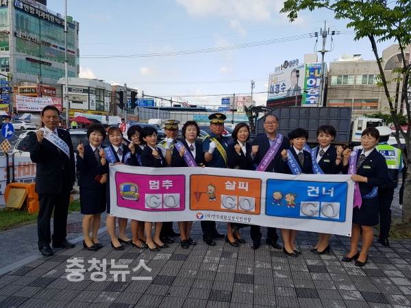 대전 대덕구(임찬수 대덕구청장 권한대행)가 23일 아침 신탄진네거리에서 교통사고 사망자를 줄이기 위해 매월 22일을 교통문화의 날로 정하고 교통안전 캠페인을 전개했다.
