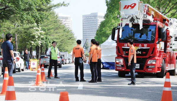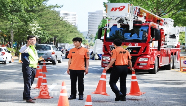 또 행사장 내에 위치한 둔산119센터의 비상시 문제점을 확인하기 위해 소방차 및 구급차의 출동상황을 가상한 모의 운행을 통해 이상이 없음을 확인했다.