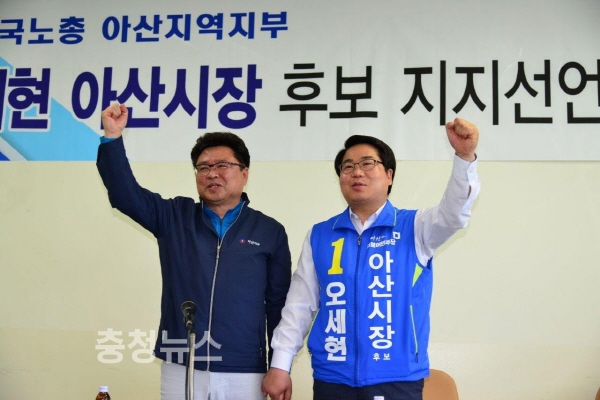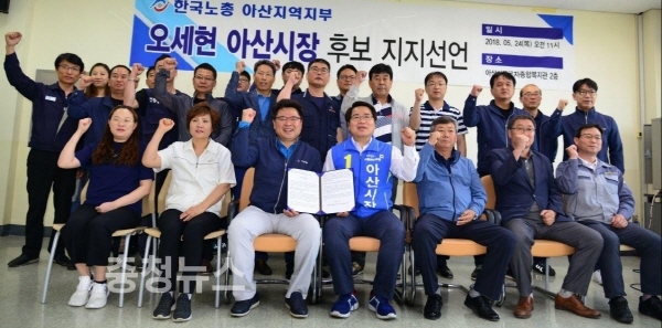 한국노총 아산지역지부, 오세현 아산시장 후보 지지 선언 / 충청뉴스 최형순 기자