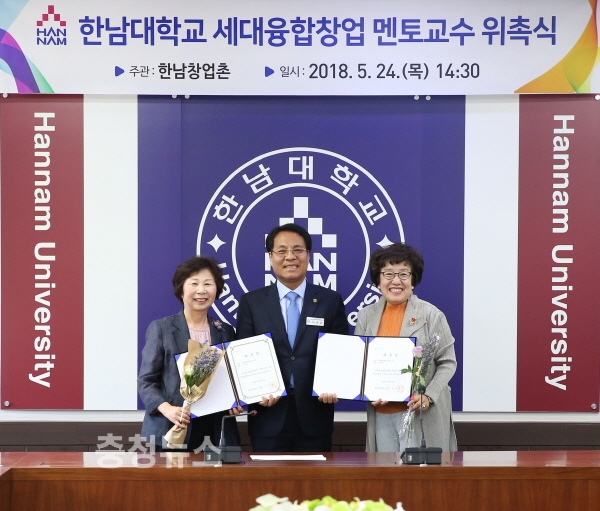 한남대는 지난 24일 식품영양학과 강명희 명예교수, 이미숙 명예교수 등 2명을 창업교수로 위촉했다. 두 교수는 앞으로 창업에 도전하는 식품영양학과 재학생들과 매칭해 1대1 상담 및 창업 노하우를 전수한다.
