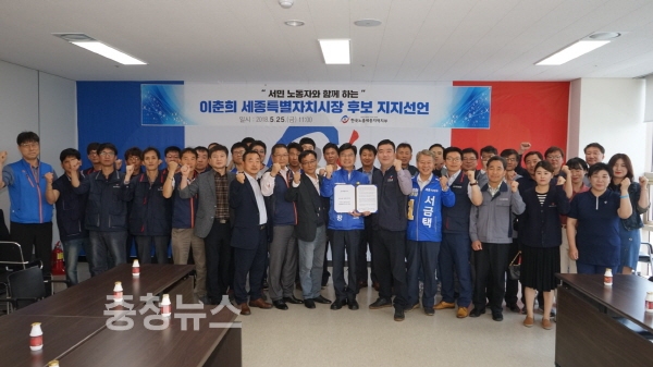 이날 정명식 지부장은 “앞으로 4년 세종시가 행정수도로 완성되고 열심히 땀 흘리고 일하는 사람들이 살기 좋은 도시로 발전하기 위해서는 일할 수 있는 사람, 세종시를 가장 잘 아는 후보, 특히 노동의 소중함을 아는 후보가 되어야 한다. 이춘희 후보 뿐”이라며 목소리를 높였다.