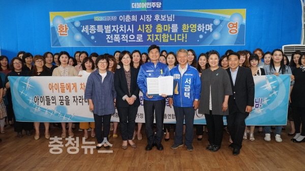 더불어민주당 이춘희 세종시장 후보에 대한 노동, 보육, 교육계 지지가 잇따르고 있다.