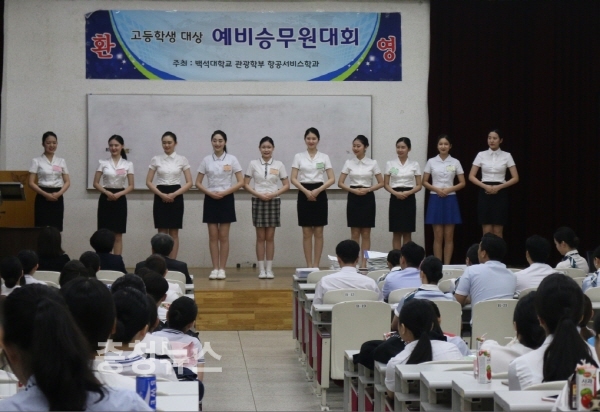 백석대학교(총장 장종현)는 “항공승무원을 꿈으로 가진 고등학생들을 대상으로 교내 항공서비스실습실 등에서 ‘제5회 백석대학교 예비승무원대회’를 개최했다”고 27일 밝혔다.