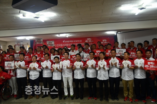 자유한국당 6·13 지방선거 대전지역 후보자들이 27일 오후 선거대책위원회 발대식을 열고 민주당 허태정 대전시장 후보의 병역 의혹에 불을 지폈다.