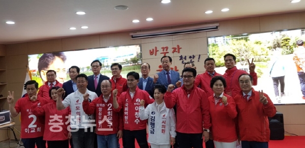 이날 개소식에는 심대평 전 충남도지사, 김태흠·홍문표·성일종·이명수 국회의원, 이인제 충남도지사 후보, 박상돈 천안시장 후보 등 당 주요당직자와 지지자 등 500여 명이 참석했다.