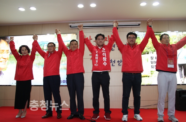 성일종 충남도당위원장은 "천안 국회의원은 지역을 대변하고 지역의 30년 미래를 준비해야 하는 사람인데, 거제사람 평택의사를 뽑겠느냐“며 "행정과 입법, 정치까지 탁월한 능력을 발휘하고 닦은 이창수 후보야말로 준비된 이창수 후보가 여의도 국회에 입성해 충청인을 대변할 수 있도록 해달라"고 당부했다.