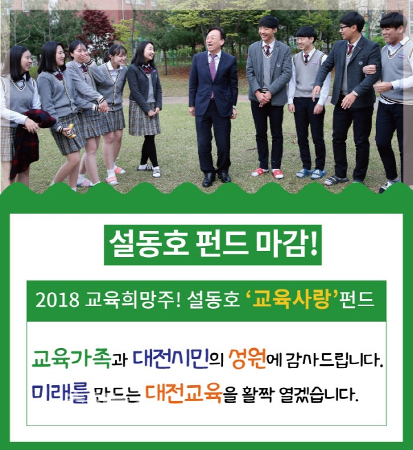 설동호 대전교육감 후보의 ‘교육사랑 펀드’가 26일 정오 목표액을 채우고 마감했다.