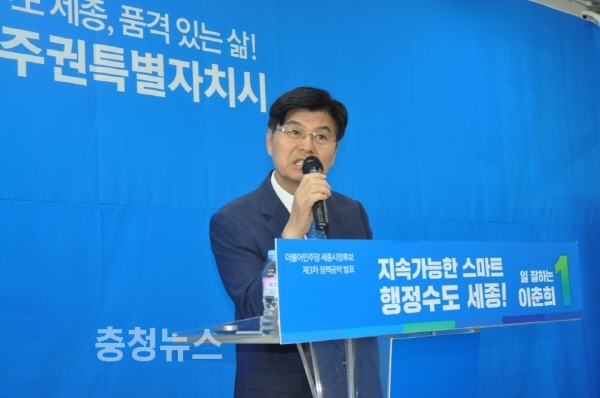 이춘희 더불어민주당 세종시장후보는 28일 사무실에서 '지속 가능한 스마트 행정수도 만들기’제3차 정책공약 발표 기자회견을 열고 경제분야 5대 공약을 발표했다.
