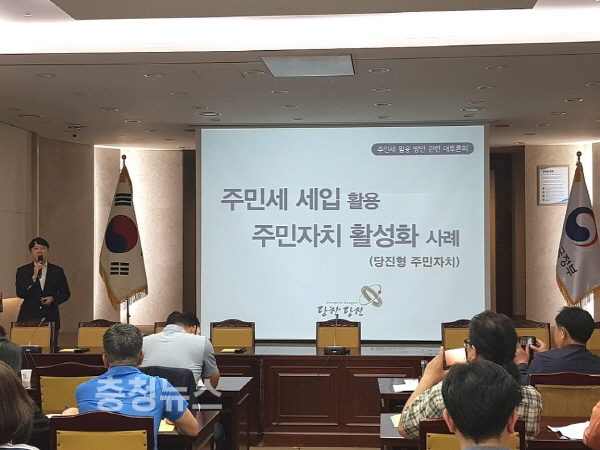 충남 당진시가 29일 정부서울청사 대회의실에서 대통령소속 자치분권위원회와 행정안전부 주민자치형 공공서비스 추진단이 주최한 주민세 활용방안 관련 대토론회에서 우수사례를 발표했다.