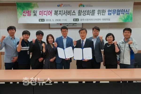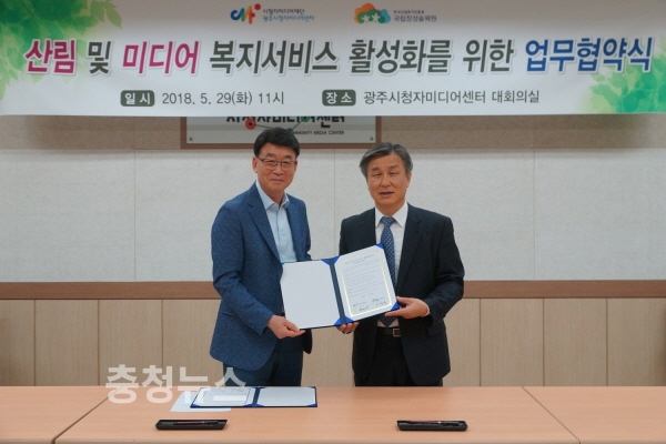 산림청 한국산림복지진흥원(원장 윤영균)은 소속기관인 국립장성숲체원(원장 박산우)이 29일 광주 서구 회재로 광주시청자미디어센터(센터장 박대식)센터와‘산림·미디어 복지서비스 활성화를 위한 업무협약(MOU)’을 체결했다.