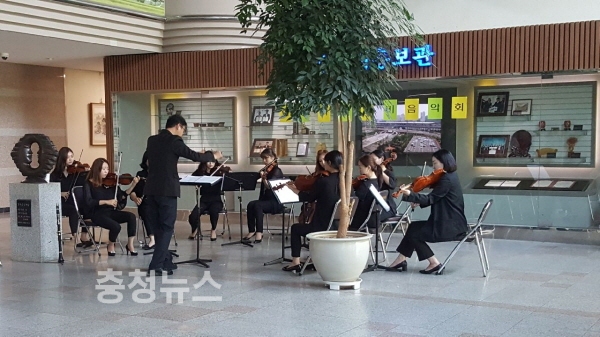 29일 아산시청 1층 로비에서 아산시교향악단의 로비음악회가 개최됐다.