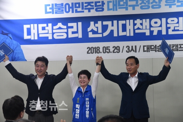 한편 박정현 후보 캠프 선대위 상임선대위원장은 신동곡 전 평민당 대전동구지구당 위원장, 서윤관 전 민주당 대덕구지역위원장, 박영순 전 청와대 선임행정관이, 총괄선대위원장은 박종래 대덕구지역위원장이 선임됐으며, 공동선대위원장은 이세형 전 대덕구의회 의장과 박병철 대전시의원, 김안태 전 대덕구 더불어포럼 대표가 맡았다.