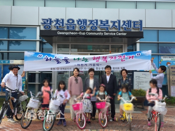 특히 국제로타리 3620지구 15-16년도 홍성·청양 지역협의회는 지난 29일 뜻을 모아 광천읍 행정복지센터에서 아이들이 가지고 싶어 했던 자전거 7개를 후원하는 ‘하늘을 나는 행복 자전거 전달식’을 가졌다.