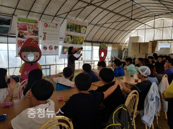 수실농원에서 방과후아카데미 ‘도담’ 학생 33명이 참여한 가운데 진행된 재능나눔은 지역 특산물인 딸기수확체험, 딸기 비누 만들기 등 다양한 농촌체험을 하며 생명력 넘치는 5월의 봄기운을 만끽했으며, 올해 총 8회에 걸쳐 운영할 예정이다.
