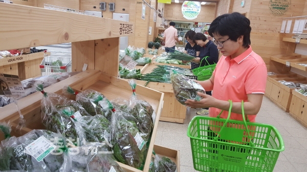 우성농협 로콜푸드직매장에서 소비자들이 농산물을 꼼꼼히 살피고 있다.
