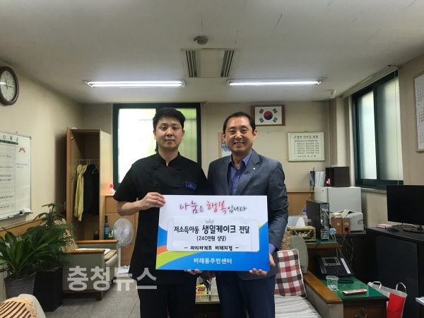 대덕구 비래동에 위치한 파리바게트 비래지점(대표 주완기)은 30일 비래동 주민센터에서 “소외계층 아동⋅청소년을 위한 생일맞이 달콤케이크 지원” 전달식을 가졌다.