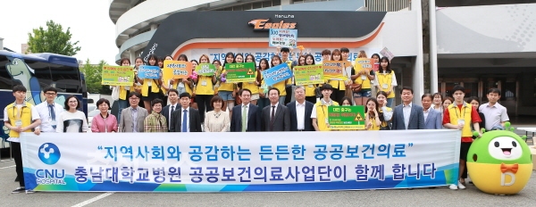 충남대학교병원(원장 송민호)은 지난 29일 대전 한화이글스파크에서 열린 ‘한화이글스 vs NC다이노스’경기에서 지역사회 건강인식개선 및 질병 예방관리 홍보 캠페인 행사를 가졌다.