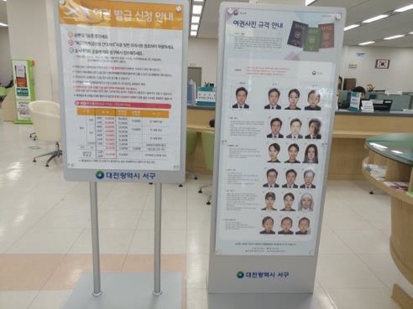 ‘여권 안내판’에는 여권발급신청 안내, 올해 새로 바뀐 여권 사진 규격 안내, 여권 수령 및 수령 후 유의사항, 여권 상식 등을 수록했다.