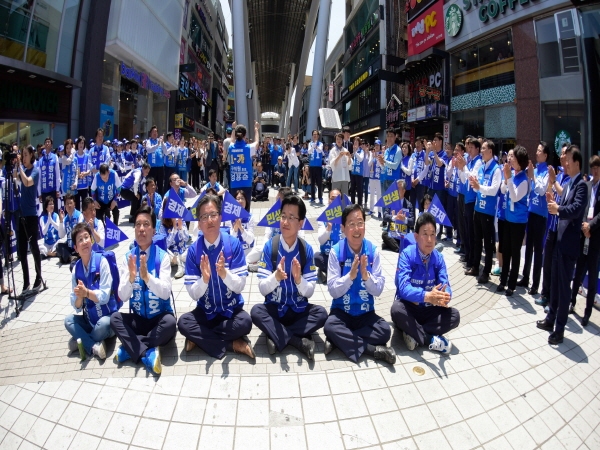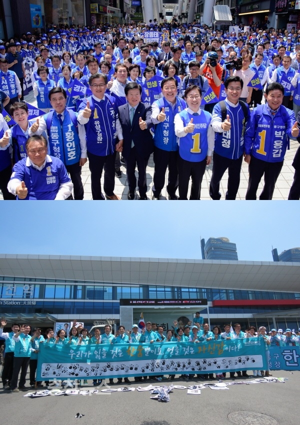 먼저 민주당은 이날 오전 대전 중구 으능정이거리에서 대전 지역 전체 후보자 및 선대위 관계자, 당원, 지지자 등 2000여 명이 참석한 가운데 출정식과 대규모 합동 유세를 펼치는 등 유권자들의 표심을 자극했다.