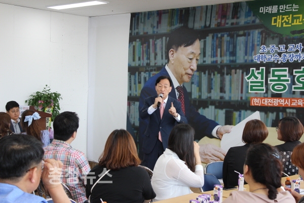 또, 설 후보의 주요공약인 기초학력 보장 책임교육 완성과 창의·융합형 인재 양성을 위해 노력해 줄 것을 당부했다.
