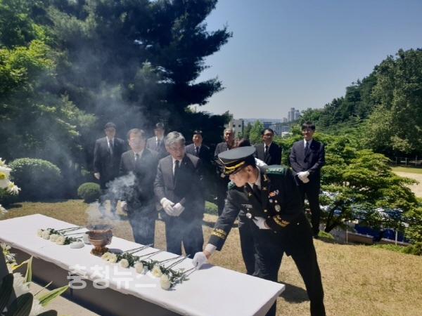 충남대는 1일 학군단 연병장에서 故 권영주 중위 유족과 학군단 장병 및 대학관계자 등 150여명이 참석한 가운데 故 권영주 중위 제38주기 추모행사를 가졌다.
