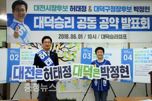 한편 박 후보는 허태정 대전시장 후보와 함께 ▲충청권 ‘미래철도 ICT 산업 슈퍼클러스터’ 조성 ▲동부권 제2 대덕밸리 조성 ▲신탄진 ‘평생학습시설’ 설립 ▲공공산후조리원 건립 ▲대덕구민의 공유공간 20곳 조성 ▲대덕노인복지회관 설립 등을 공동으로 추진키로 했다.