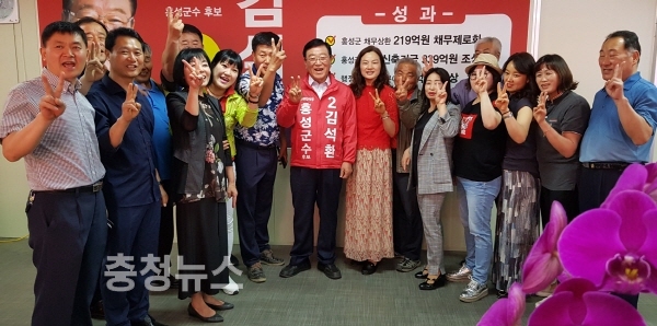 이어 필승을 외치며 당선을 확신한다는 구호를 제창하고 김석환 군수후보와 기념사진 촬영을 했다.