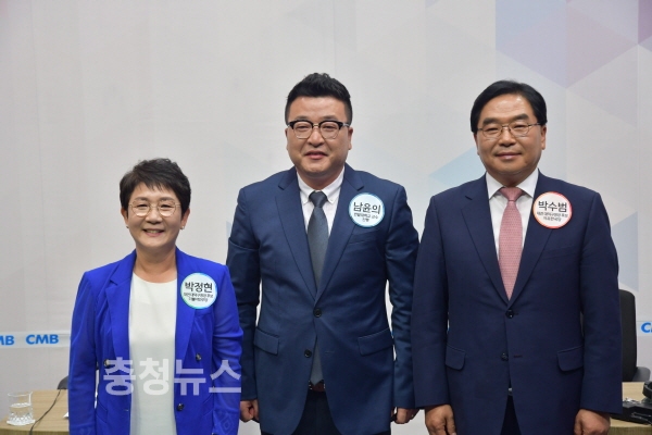 3일 CMB 대전방송과 충청뉴스 등이 공동으로 마련한 대전 대덕구청장 후보자 초청 토론회 첫 순서인 기조발언에서 민주당 박정현 후보는 떠나가는 대덕을 만든 이유에 대해 지난 12년 동안 장기집권 한 한국당의 책임론을 제기했다. 이에 한국당 박수범 후보는 부패·부채 제로의 시대를 열었다며 갑자기 나타나 각종 논란만 일으키는 후보는 일을 잘 할 수 없다고 반격에 나서면서 불을 붙였다.