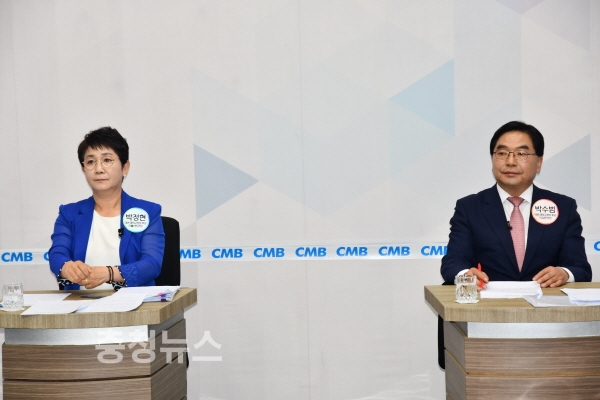 대덕구청장 도전자로 나선 더불어민주당 박정현 후보와 재선을 노리는 자유한국당 박수범 후보자 간 수차례 날 선 공방을 벌였다.
