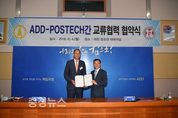 ADD와 POSTECH은 4일 ADD 대전 본소에서 국방과학기술 및 방위산업 발전에 기여하기 위한 교류협력을 체결한다.