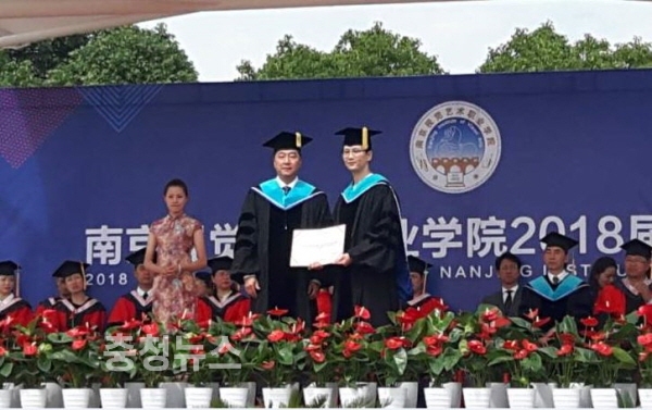 중부대학교 이정열 부총장이 2일 중국 남경시각예술대학에서 열린 학위수여식에서 남경시각예술대학으로부터 명예교수로 위촉되어 임명장을 전달받았다.