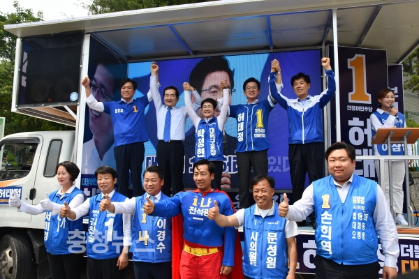 그러면서 “8년간 유성구청장 역할을 잘 맡고 이미 검증된 허 후보를 문재인 정부 출범에 기여한 허 후보에게 압도적 지지와 성원을 보내 달라”고 힘을 실어줬다.
