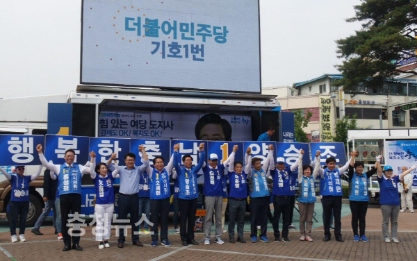 한편 강 전 장관과 권 의원, 양승조 후보, 오세현 후보 등은 집중유세 전 온양 향토5일장 장과 전통시장 등을 돌며 시민들을 상대로 열띤 선거운동을 벌였다.