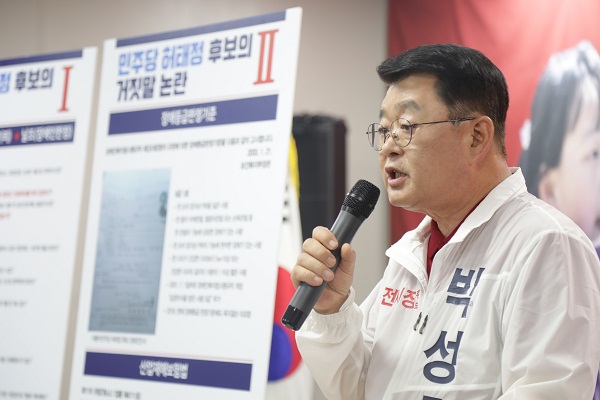 박성효 자유한국당 대전시장 후보가 더불어민주당 허태정 후보를 둘러싼 각종 의혹과 관련, 일부 시민사회단체에 대한 자성을 촉구하고 나섰다.