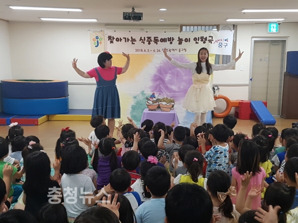 대전 중구는 어린이에게 바른식단을 쉽게 알리기 위해 찾아가는 놀이 인형극을 실시한다.