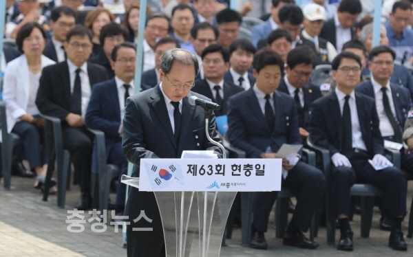 이날 추념식는 순국선열과 호국영령에 대한 묵념, 헌화 및 분향, 추념사(세종시장 권한대행 행정부시장),추모헌시, 현충일 노래제창등 순서로 진행됐다.