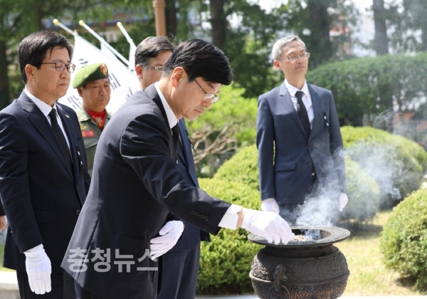 세종시의원 후보들도 조치원 충령탑에서 열린 현충일 추념식에 참석 나라를 되찾고 지키며 꽃피우기 위해 희생하신 분들을 기억하며 감사하고 추모하는 시간을 가졌다.