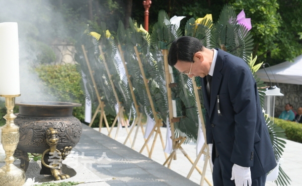 이날 추념식에는 홍성목 논산시장 권한대행을 비롯해 9개 보훈단체장, 국가유공자 및 유족, 관내 기관단체장, 시민 등 1200여명이 참석했다.
